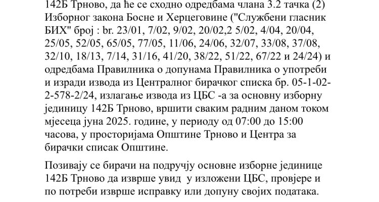 ОБАВЈЕШТЕЊЕ ЗА БИРАЧЕ