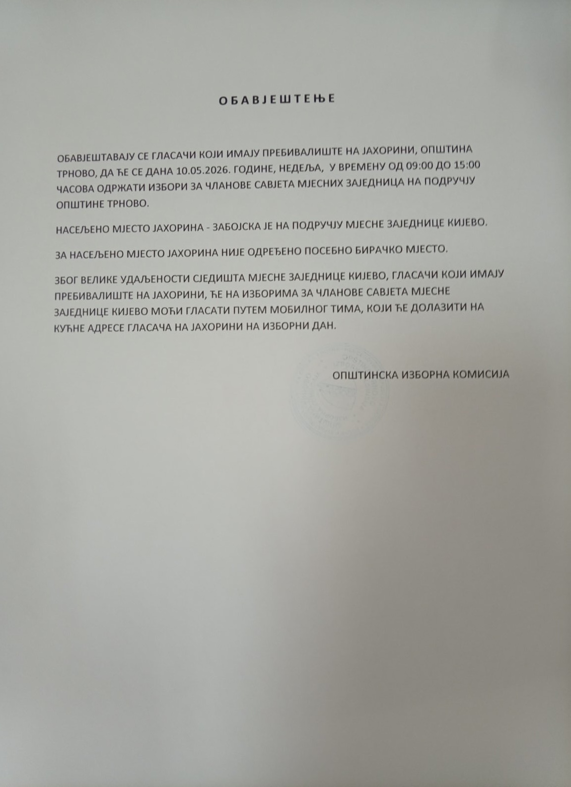 ОБАВЈЕШТЕЊЕ ОПШТИНСКА ИЗБОРНА КОМИСИЈА (1)