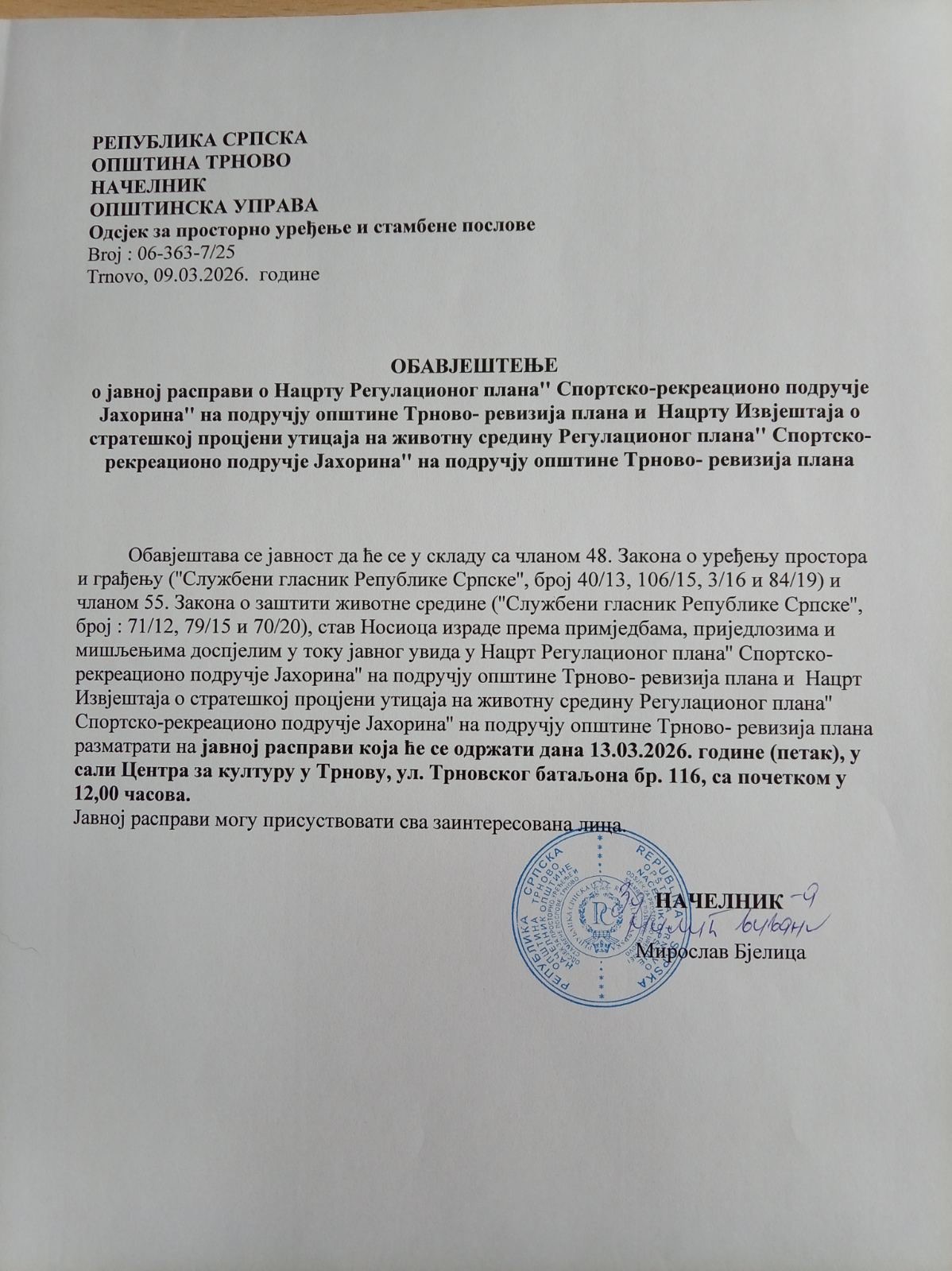 ОБАВЈЕШТЕЊЕ О ЈАВНОЈ РАСПРАВИ О НАЦРТУ РЕГУЛАЦИОНОГ ПЛАНА И НАЦРТА ИЗВЈЕШТАЈА О СТРАТЕШКОЈ ПРОЦЈЕНИ